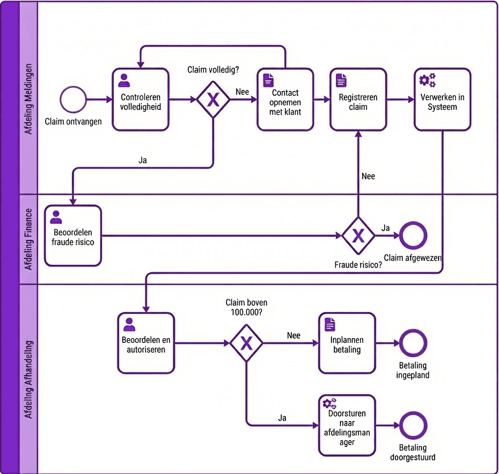 BPMN 2.0 output. Direct inzetbaar in Bizzdesign, Blue Dolphin, SAP-Signavio en meer.